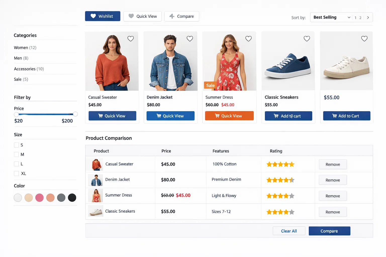 | Stock indicator | Medium | Low stock urgency messaging support |